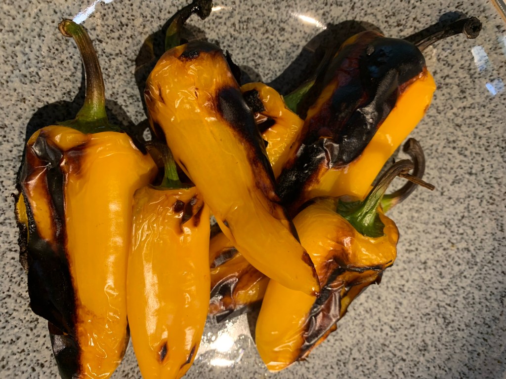 - 1 cup of grilled yellow peppers that have been deseeded with the stems removed.