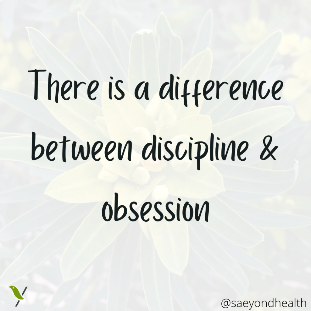 Obsession can look like: -Avoiding social connections in the interest of trying to control too many variables. e.g. skipping family dinners for the sake of calorie counting. -Prioritising an exercise regime over sufficient sleep and recovery. If you only slept four hours that night be kind to yourself rather than hitting a hard sesh in the gym and wearing it like a badge of honour. -Judging others and their lifestyle choices; You do you and let others do them.